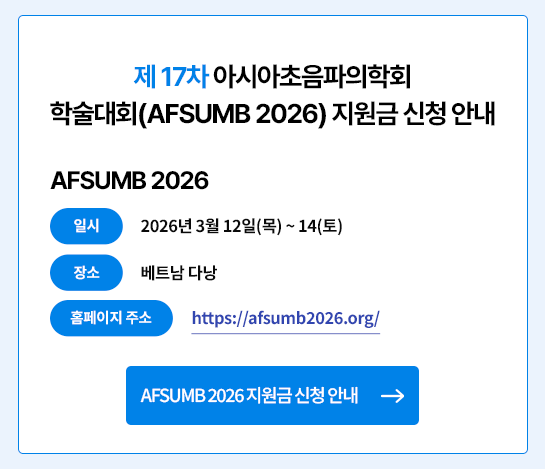- 제 17차 아시아초음파의학회 학술대회(AFSUMB 2026) 지원금 신청 안내 2026-01-06