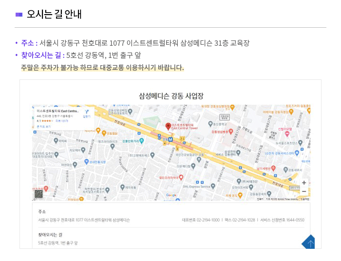 장소 : 삼성메디슨 강동사옥 31층 교육장