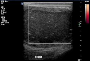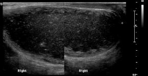 | Comments | Difficult to diagnose due to the lack of a characteristic \"onion-skin\" shape and non-visible normal testicle. |